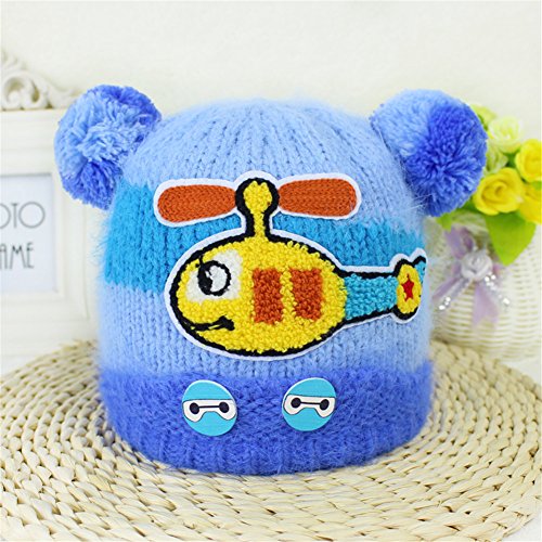 防寒 かわいい ベビー キッズ 赤ちゃん 保温 ニット帽子 ボンボン付き 航空機 風 2017新製品 light blue