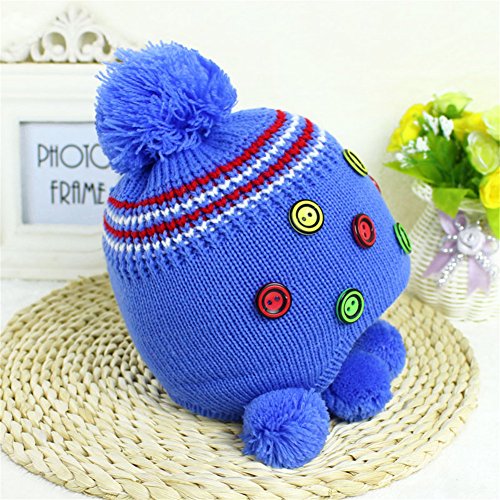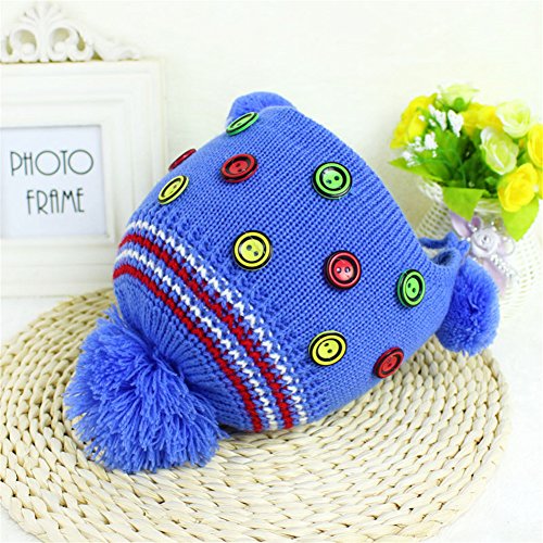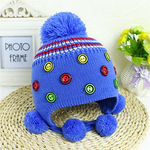 耳まであったか! ニット帽子 ボンボン付き かわいい 防寒 保温 ベビー キッズ 赤ちゃん ニット帽子 2017 新製品 blue