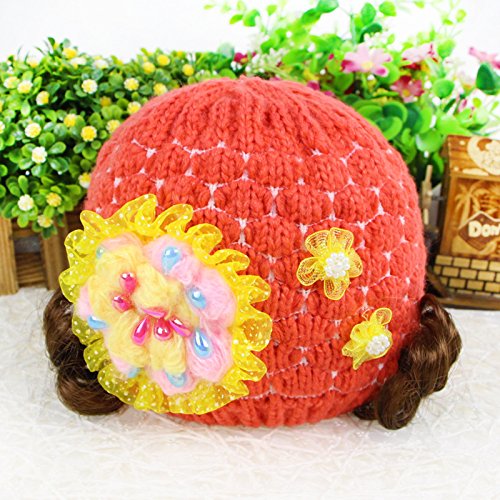 防寒 かわいい ベビー キッズ 赤ちゃん ニット帽子 花飾り 2017 新製品 (watermelonred)