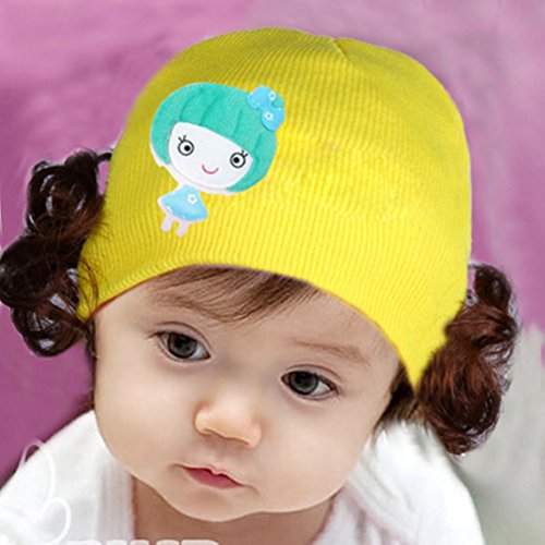 帽子 ベビー キャップ キッズ 子供ハット かつら ウィッグ 付き 新生児 女の子 ヘアバンド ヘアアクセサリー 美しい花 (F)