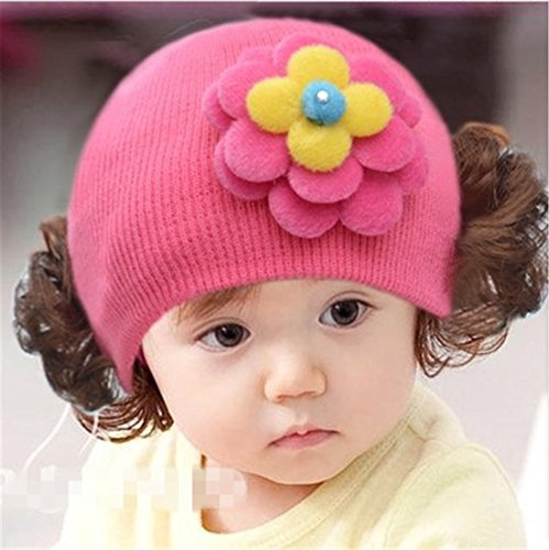 帽子 ベビー キャップ キッズ 子供ハット かつら ウィッグ 付き 新生児 女の子 ヘアバンド ヘアアクセサリー 美しい花 ローズ