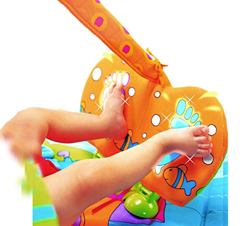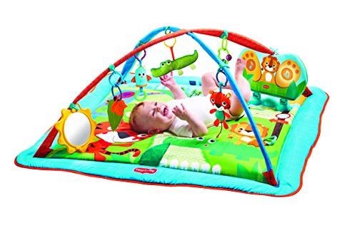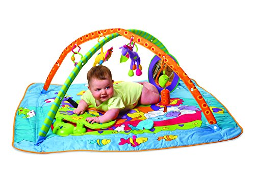 The Tiny Love Gymini Kick & Play is a multi-stage activity mat with a dual position baby activated Kick & Play response pad. Extra large play mat which has a closed border and open border option. The gym includes a lion rattle, textured giraffe, leaf teether, duck wind chime, large mirror and bead rattle.