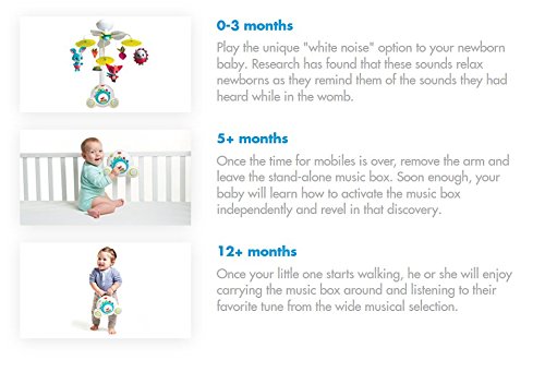赤ちゃんと一緒に成長する:乳幼児で音楽のモバイルとしてベビーベッドで始まります。その後、モバイルは、スタンドアローンのオルゴールとして楽しい幼児の遊びのために取り外すことができます。 エンターテインメントの選択:6種類の音楽オプションと、合計18種類の魅力的なメロディーを提供します。 サウント・アンド・アムース:40分の連続した音楽:ナンプティのための落ち着きのある楽曲、インタラクティブな演奏のためのよりエネルギッシュな音楽、または毎回新鮮なリスニング体験のためのシャッフルオプションを選択してください。 おしゃれな動き:穏やかでリラックスした赤ちゃんのために特別にデザインされた落ち着いた動き。 夜の軽食:静かな夜間では、ソフトナイトライトが赤ちゃんを快適にします。