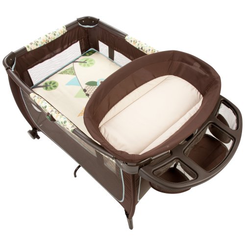Elevated, changing table;Convenient accessory tray with mesh baskets-holds large wipes container;Features toy arch with soft toys;Spacious play yard for napping or play;Innovative, visible secure-tech lock system cues to lock and unlock latches for easy set up and storage stop or go wheels for mobility on-the-go carry bag