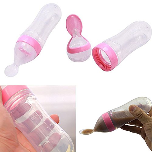 - 90 mlスプーン付きのシリコンベビーボトルフィーダー、人間工学的な形は簡単に絞り、ミルクにも最適ダウンが、最後に1口、および式