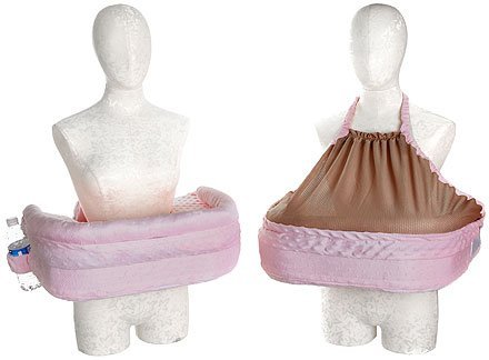 Pillow Insert: Eco*Loft fiber, FREE of fire-retardant chemicals, hypo-allergenic, non-toxic, eco-friendly, recyclable, glue-free, foam-free, lead-free, and Phthalate-free.;Privacy Cover - Built-in, detachable vented nursing cover-up made of lightweight mesh to allow airflow and discretion.;Angled Surface & Comfort Bolster - The angled top surface positions baby towards mother, encouraging proper positioning, latch, suckle and swallow while the Comfort Bolster provides added security from roll-offs.;The DETACHABLE BACK PILLOW allows the mother to place it anywhere along her spine for optimum posture and comfort while the ADJUSTABLE WAIST STRAP with Quiet-Squeeze buckle fits up to 52 waist, securing pillow to mom. The pillow also includes DUAL POCKETS; two bottle holsters on the right-hand side and a side pocket on the left-hand side for a cell phone.;This item is designed for nursing one baby, birth to two years