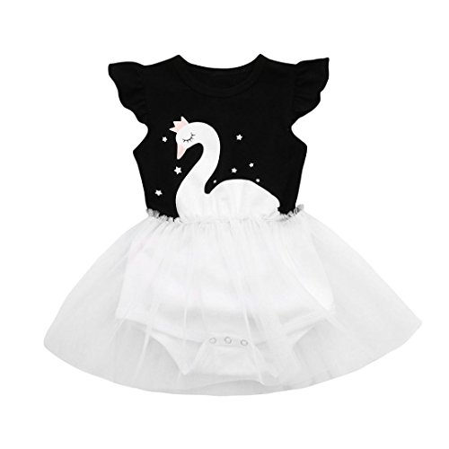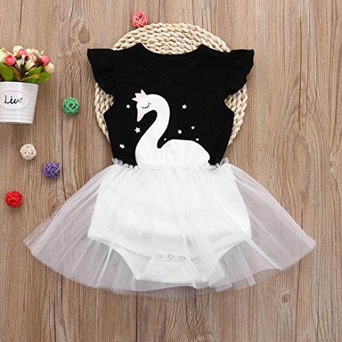 Dourabbi 子供服 新生児 幼児 ベビーガール 赤ちゃん 幼児 女の子 スター 白鳥 プリントネット 糸 プリンセス チュチュドレスの服 ストライプトップス デニム ショートパンツの服 cute パーティーセット pretty cute daily (100, ブラック)