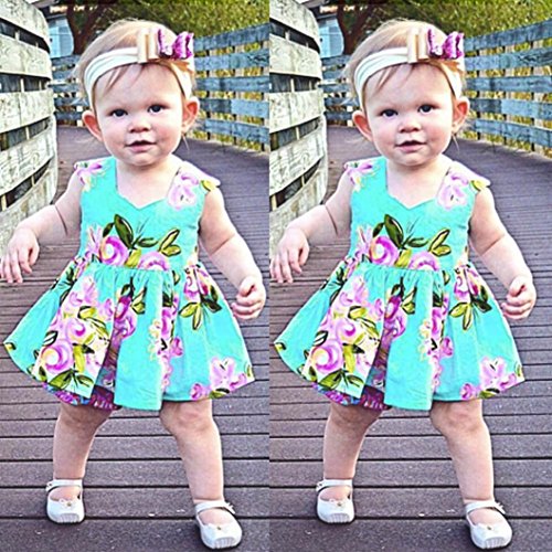 Dourabbi 子供服 ベビー ドレス ベイビー 幼児 2018 新生児 幼児 赤ちゃん 蝶々結び 女の子 プリンセス 柄 赤ちゃん 花 カジュアルドレス pretty cute daily (120, ブルー)
