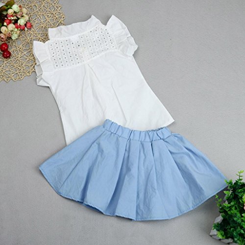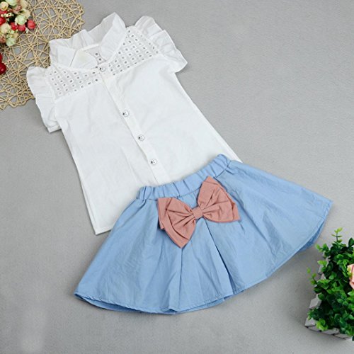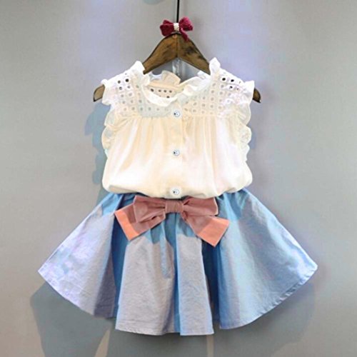 Dourabbi 子供服 女の子 dress for baby 夏 可愛い オシャレ ベビーガールズ ベスト Tシャツ 蝶々結び ショート スカートセット パーティードレス pretty cute daily (120, ブルー)