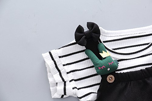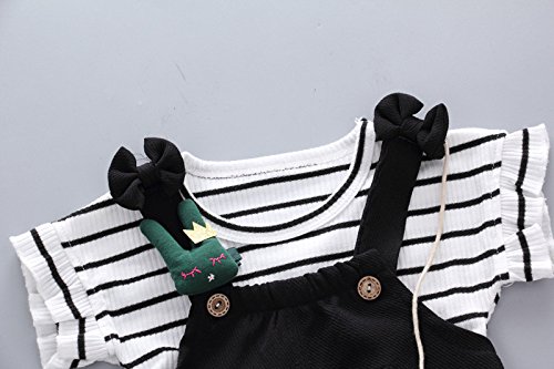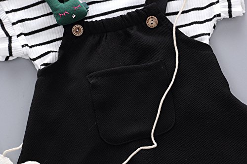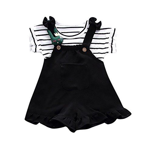 Dourabbi 子供服 女の子 春 可愛い 幼児 服セット 結婚式 発表会 入学式 卒業式 保育園 運動会 キッズ ベイビー ガールズ サマー ストライプ 半袖シャツ+サスペンダーショーツ セット (100, ブラック)