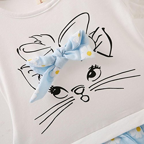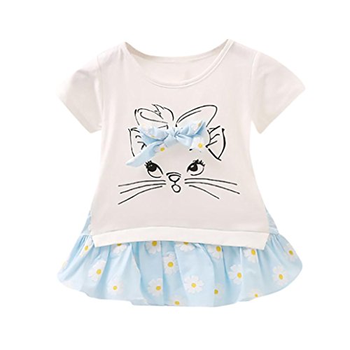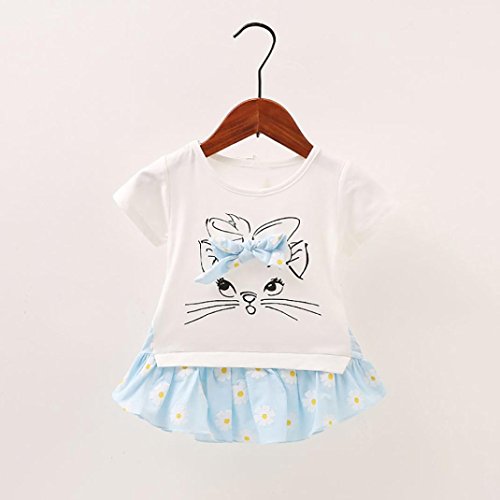 Dourabbi 子供服 赤ちゃん 女の子のドレス 漫画の猫 花 ドレス半袖 ドレスの服女の子 春 幼児 赤ちゃん 幼児 赤ちゃん 女の子 花 ストライプ トップス+ショートパンツ 子供 プリンセスドレス かわいい ミニドレス パーティー 可愛い 幼児 発表会 入学式 卒業式 保育園 幼児 女の子 子供 幼児 キッズ ベイビーガールズ ページェント ウェディング 日常 可愛い エレガント 優雅 (100, ブルー)