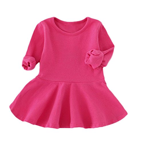 Dourabbi 子供服 女の子 春 幼児 赤ちゃん dress for baby girls キッズ キャンデー色 ロングスリーブ ソリッド プリンセス カジュアル 子供のドレス 舞台劇 結婚式 発表会 入学式 卒業式 保育園 女の子 夏 花のドレス パーティー ウェディング チュール ドレス 幼児 女の子 フラワー 花嫁風 蝶々結び 服装 ドレス ドレス服 発表会 保育園 日常 可愛い エレガント pretty cute daily 優雅 (92, ホットピンク)