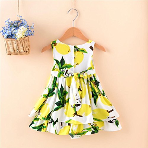 Dourabbi 子供服 女の子 春 夏 幼児 赤ちゃん かわいい 夏 lemon レモンのプリント 蝶々結び カジュアル プリンセス ドレス dress for baby 蝶々結び 写真 撮影 ドレス ソリッド サマー 誕生日 可愛い cute pretty キッズ ふわふわ 肌触りがいい Newborn 柔らかい スーツ 服 保育園 花のドレス パーティー ドレス 発表会 保育園 日常 可愛い エレガント pretty cute daily 優雅 (120, イエロー)