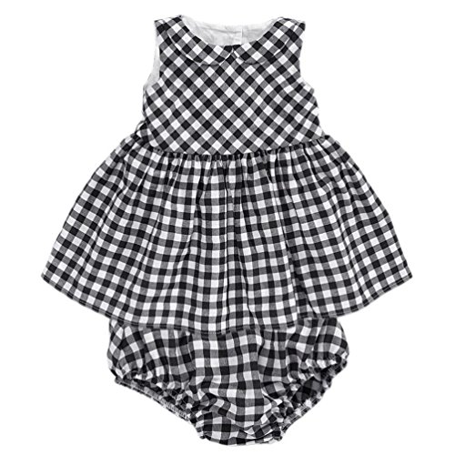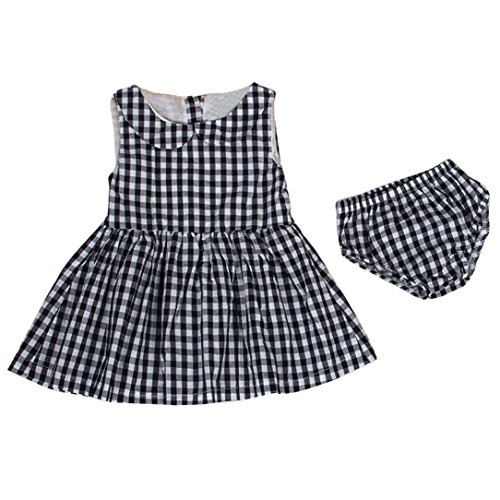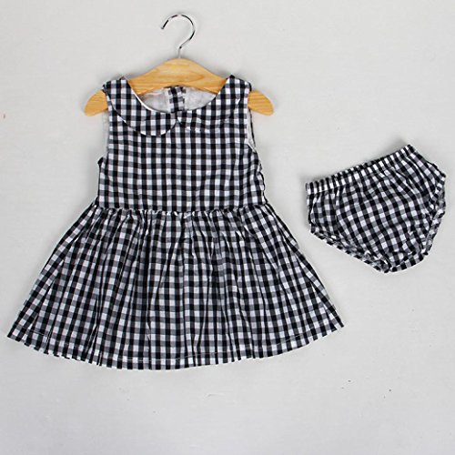 Dourabbi 子供服 ベビー ドレス ベイビー 幼児 子供 赤ちゃん 2018 ロンパース 新生児 幼児 赤ちゃん 蝶々結び 赤ちゃん 女の子 幼児 誕生日 服 幼児 子供 赤ちゃん チェック柄 ドレス ショートパンツ1 セットpretty cute daily (90, ブラック)