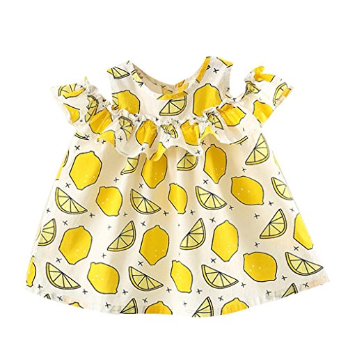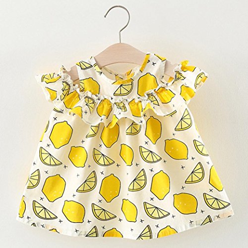Dourabbi 子供服 ベビー ドレス ベイビー 幼児 2018 新生児 幼児 赤ちゃん 蝶々結び 女の子 プリンセス 柄 赤ちゃん 花 ノースリーブ 果物 プリンセス ドレス pretty cute daily (100, イエロー)