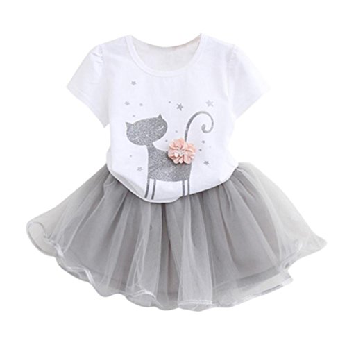 Dourabbi 子供服 女の子 dress for baby 夏 幼児 漫画 猫のプリント ドレス セット pretty cute daily (120, ホワイト)