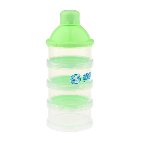 Dovewill 赤ちゃん ベビー お出かけ用 4層 粉ミルク スナック 離乳食 保存容器 フードボックス ボトル 全3色 - グリーン