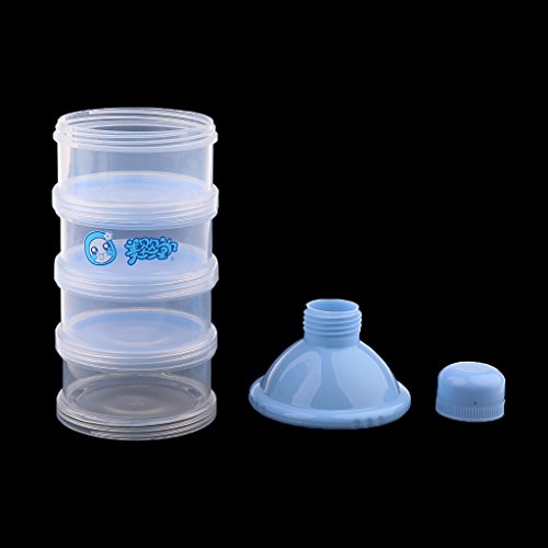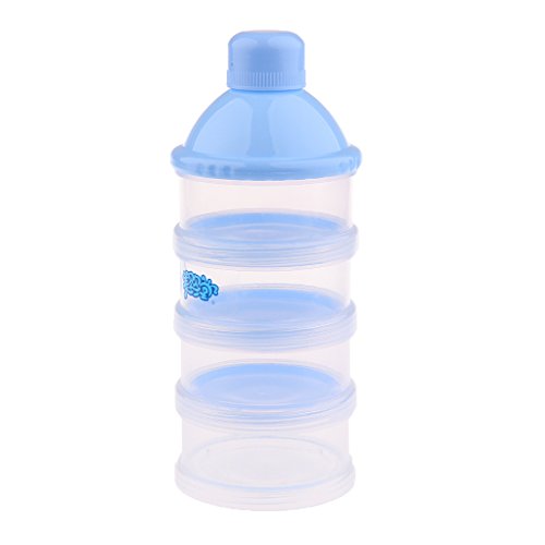 Dovewill 赤ちゃん ベビー お出かけ用 4層 粉ミルク スナック 離乳食 保存容器 フードボックス ボトル 全3色 - ブルー