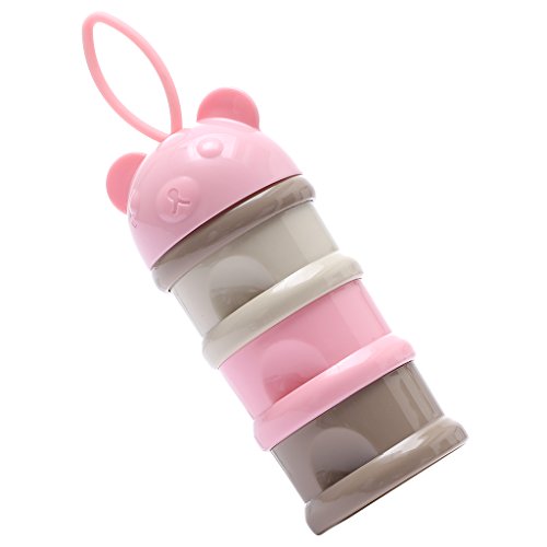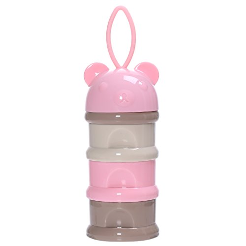 Dovewill 赤ちゃん ベビー お出かけ 3層 非流出 ミルク/スナック 離乳食保存 コンテナ 携帯ケース ボックス 2色選べる - ピンク