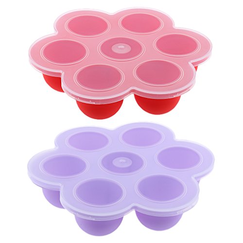 Dovewill 2セット 安全 赤ちゃん ベビー 離乳食保存 冷凍小分け トレイ フード冷凍保存皿 6色選べる - 赤と紫