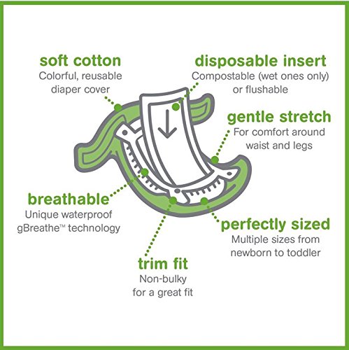 gDiapers gPants are soft cotton diaper covers made of breathable materials so babies are less likely to get diaper rash;Each pair includes a breathable, waterproof pouch to hold the insert in place, contain the mess and keep baby clean and comfortable;Use with gDiapers Disposable Inserts, which can be flushed, composted (wet ones only), or tossed (optional cloth inserts also available);gPants are perfectly sized to fit babies from newborn to toddler, available in newborn, small, medium, large, and x-large;No special care needed, machine wash in cold or warm water, tumble or line dry