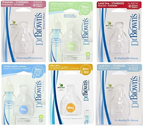 Replacement silicone nipples, exclusively for Dr. Browns Natural Flow Standard baby bottles. Ideal for feeding premature babies.;You will get a Variety of 12 Nipples [ 2 x Preemie - 2 x Y Cuts - 2 x Level 1 - 2 x Level 2 - 2 x Level 3 - 2 x Level 4 ];replacement silicone nipples;Total of 12 Nipples