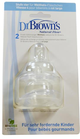 ブラウン博士のナチュラルフロー 乳首は大変柔らかな高品質のシリコン製です。乳首のレベルによって、異なる流量を提供します。このブラウン博士の乳首は、広首ビン用レベル1乳首2個入りパックです。