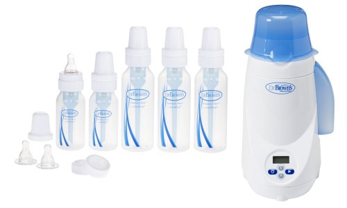 Dr. Brown's Polypropylene Newborn Feeding Set includes: (3) - 8oz bottles with Level One Nipples, (2) - 4oz bottles with Level One Nipples, (2) - Level 2 Nipples, (2) - Storage/Travel Caps, (3) - Cleaning Brushes;Helps colicky babies settle down or sleep; Reduces colic, spit up, burping and gas;Easy to clean, dishwasher safe; BPA free;It comes with Bottle Warmer - Warms standard and wide neck baby bottles and baby food jars; Refillable water chamber warms several bottles before refilling;LCD control panel is easy to read and set for memorizing heating time; Audible alarm with flashing LCD lets you know when ready