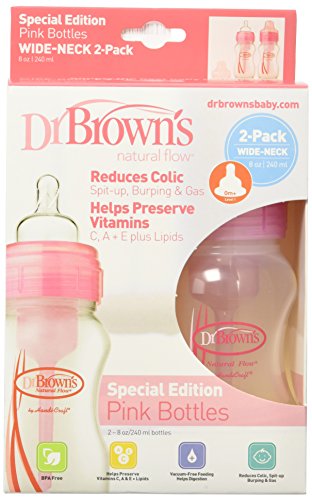 Dr Brown's 8 Ounce Wide Bottles Pink, 2pac by Dr. Brown's