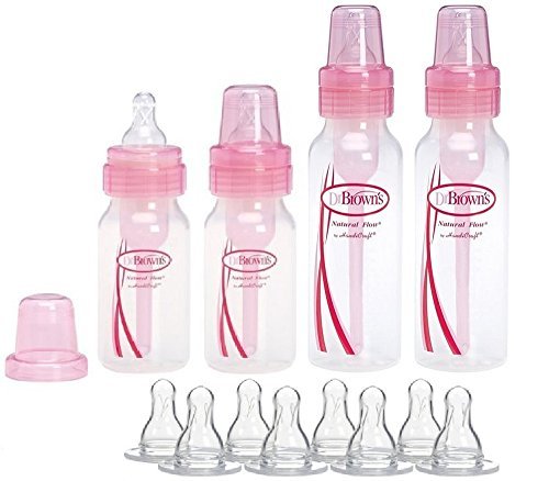 Dr. Brown's Pink Bottles (2 - 8 Oz Bottles) and (2 - 4 Oz Bottles) and 8 - Level 2 Nipples by Dr. Brown's