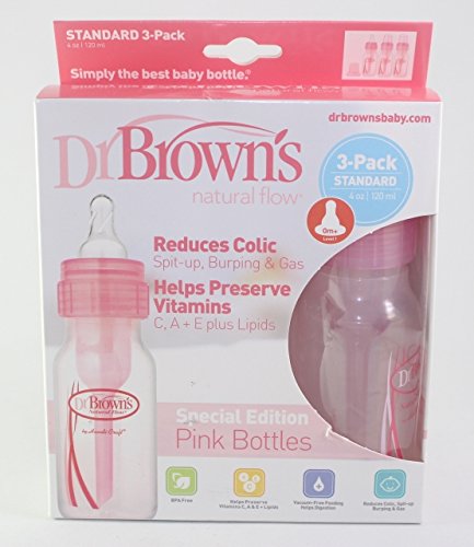 Dr. Brown's 哺乳瓶 ♪120ml、3本セット♪ ピンク ドクター・ブラウン ほ乳びん ピンクは限定品、Special Editionです。 120ml、3本セット アメリカで哺乳瓶部門の年間ベスト商品に輝いたドクター・ブラウン哺乳瓶です。 ♪ ベントシステムなので空気を吸い込まず、哺乳瓶の中に気泡でません。泡立ちもありません。よってゲップになりにくいです。 ♪ プラスチックで軽いです。電子レンジで消毒ができます。洗うのも哺乳瓶用の洗剤を水桶に入れて濯ぐだけで簡単に洗浄できます。