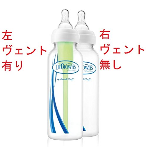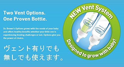 Dr. Brown's 哺乳瓶 Options Narrow ♪120ml、3本セット♪ ヴェント有り無し可能 Options ドクター・ブラウン ほ乳びん 120ml、3本セット アメリカで哺乳瓶部門の年間ベスト商品に輝いたドクター・ブラウン哺乳瓶です。 ♪ ベントシステムなので空気を吸い込まず、哺乳瓶の中に気泡でません。泡立ちもありません。よってゲップになりにくいです。 ♪ ヴェント有りでも無しでも使えます。新生児のベビーにはヴェント有で、大きくなったら無しで使うことができます。ヴェント無しでもシリコン乳首にヴェント機能が備わっているのでスムーズに飲むことができます。 ♪ プラスチックで軽いです。電子レンジで消毒ができます。洗うのも哺乳瓶用の洗剤を水桶に入れて濯ぐだけで簡単に洗浄できます。