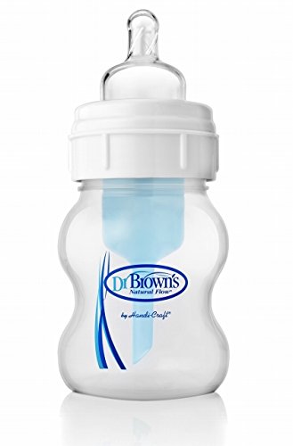 Dr. Brown's 哺乳瓶 ♪120ml、2本セット♪ ワイド・ネック ドクター・ブラウン ほ乳びん ワイドネックです。人間工学エルゴノミックによる持ちやすい形状をしています。シリコン乳首のベースも大きく母乳を与えているママに好まれています。 120ml、2本セット アメリカで哺乳瓶部門の年間ベスト商品に輝いたドクター・ブラウン哺乳瓶です。 ♪ ベントシステムなので空気を吸い込まず、哺乳瓶の中に気泡でません。泡立ちもありません。よってゲップになりにくいです。 ♪ プラスチックで軽いです。電子レンジで消毒ができます。洗うのも哺乳瓶用の洗剤を水桶に入れて濯ぐだけで簡単に洗浄できます。