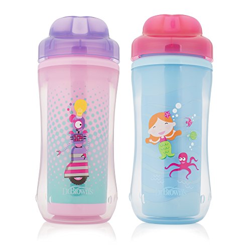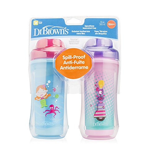 - Dr. Brown's Spoutless Insulated Cup, Girl Mermaid/Robot, Pink, 2 Count