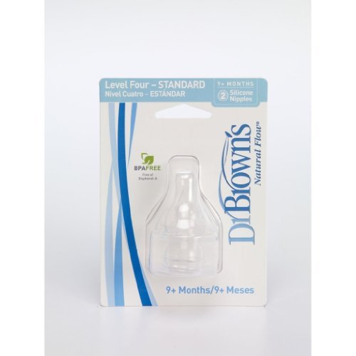 Six replacement silicone nipples;Level-4 is ideal for feeding more aggressive eaters;Exclusive for Dr. Brown's Natural Flow Standard baby bottles;Dishwasher safe-top rack only
