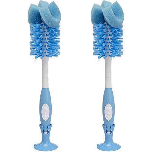 Set Includes 2 (two) Dr. Brown's Bottle Brushes;Interior cleaning brush in handle;Sponge and bristles for quick bottle cleaning;Chevron channels at base for cleaning nipples;Suction cup storage clip; Bigger, soft-grip handle