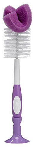Combination sponge and bristles for thorough cleaning;Grooved no-slip handle for easy grip;Chevron channels at base for cleaning nipples;Storage clip to house brush near sink;This Dr. Brown's Bottle Brush is top-rack, dishwasher safe