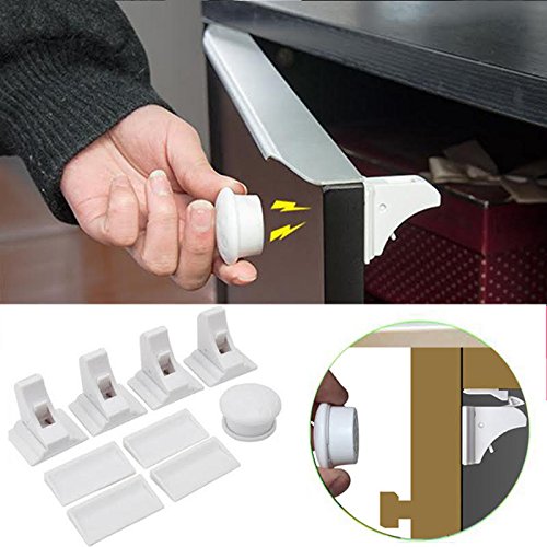 El Contente 4pcs磁気子ロックベビー安全キャビネットロックツールまたはネジ必要ない