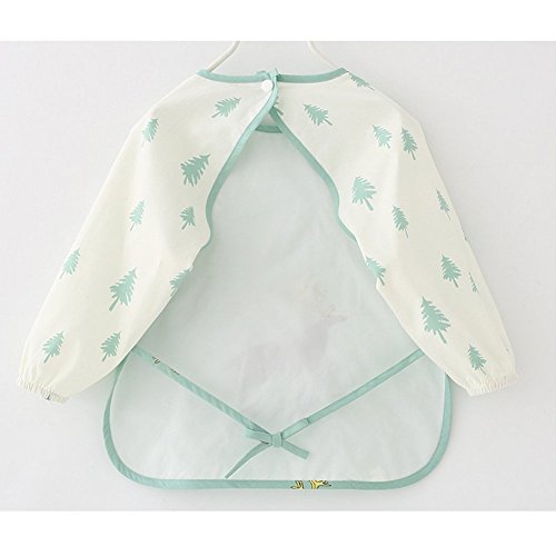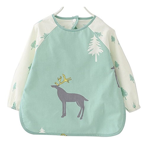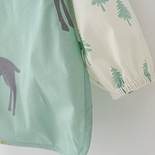 Dragon Honor ベビー 子供用 お食事用 長袖防水エプロン スモック 赤ちゃん 可愛い動物柄 洗いやすい お絵かき用 泥遊び用 (森の鹿, 80(1-2歳))