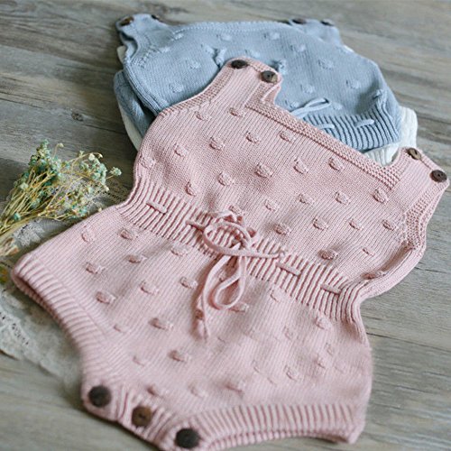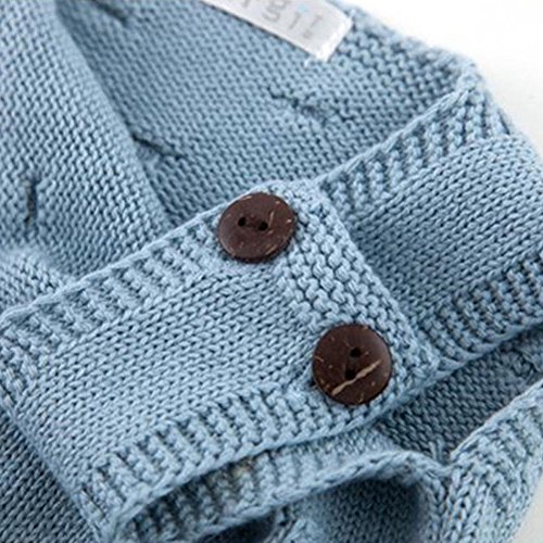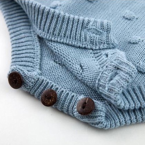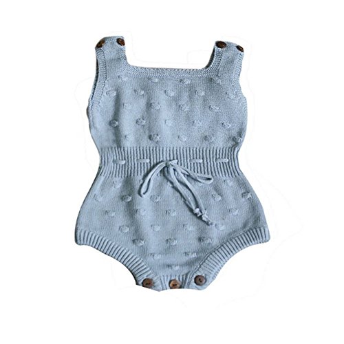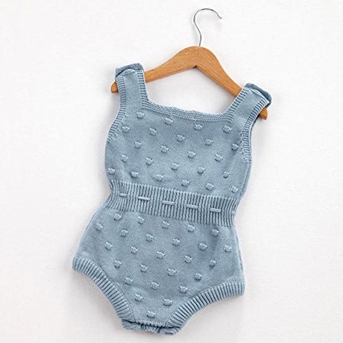 Dragon Honor ベビー ロンパース 女の子 ニット かわいい 人気 新生児サイズ 編み物 セーター 袖なし 無地 赤ちゃん服 カバーオール ボディスーツ ワンピース 出産祝い プレゼント (ブルー, 24M(18-24ヶ月))