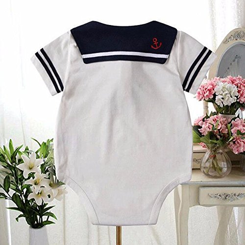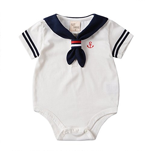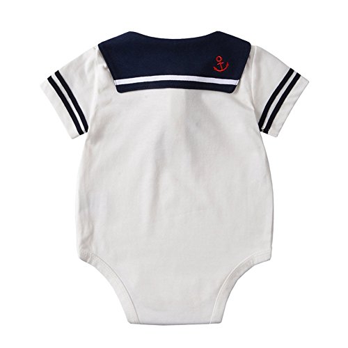 Dragon Honor ベビー服 セーラー服 ロンパース 女の子 男の子 半袖 股下全開 かわいい 新生児服 赤ちゃん服 春 夏 出産祝い 誕生日 写真撮影 (ホワイト, 60(0-6ヶ月))