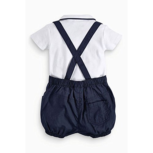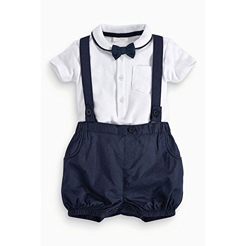 Dragon Honor ベビー ロンパース フォーマル 夏用 半袖 結婚式服 紳士服 男の子 シャツ +サロペット + 蝶ネクタイ 三点セット (80(12-18ヶ月))