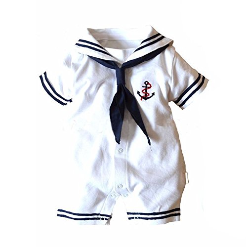 Dragon Honor ベビー セーラー服 ロンパース 半袖 前開き 新生児サイズ 男の子 女の子 子供服 赤ちゃん服 写真 道具 夏用 綿 可愛い (74(9-12ヶ月))