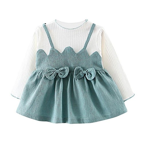 Dragon Honor ベビー ワンピース 女の子 プリンセスドレス スカート 可愛い 蝶結び 長袖 春秋 新生児サイズ 赤ちゃん服 おしゃれ 出産祝い 結婚式 写真撮影 (ブルー, 80(6-12ヶ月))