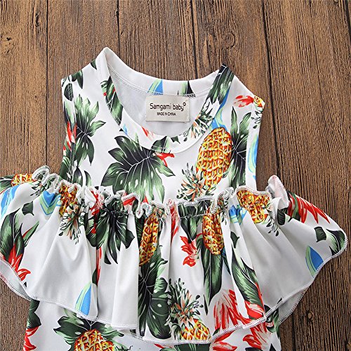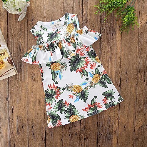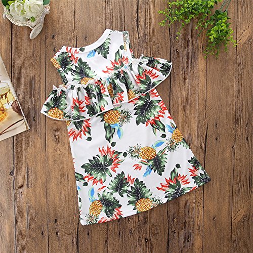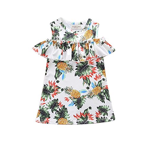Dragon Honor 子供服 ワンピース 女の子 キッズドレス プリンセス パイナップル柄 北欧風 キッズドレス 袖なし 春夏 おしゃれ 発表会、結婚式 旅行 (80)