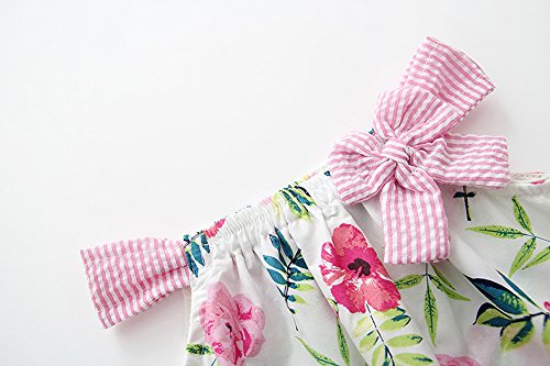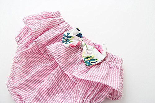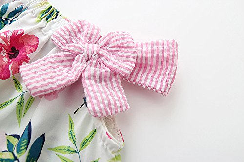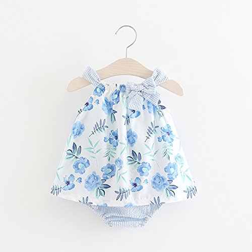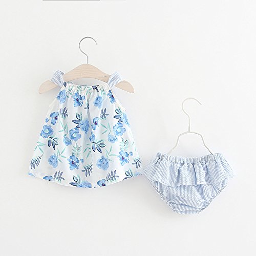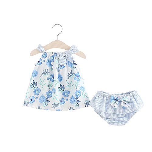 Dragon Honor ベビー ワンピース 女の子 ドレス 二点セット ワンピース+パンツ 新生児服 キャミソール 女児 花柄 蝶結び 爽やか かわいい 夏用 (ライトブルー, 80/9(6-12ヶ月))