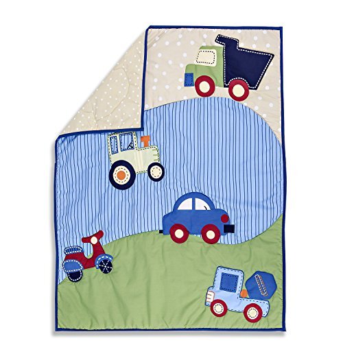 Standard playard bedding;Set includes a fitted sheet and comforter;Fits mattresses up to 38 by 26;Made of 35% cotton and 65% polyester,;Corresponding Dream On Me mattress sold separately
