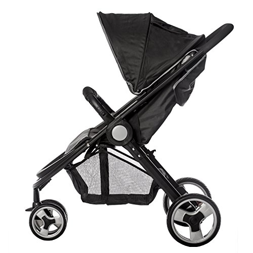 Stroller Includes: Rain Cover. Adjustable 5-point harness with shoulder pads. Detachable and adjustable canopy. Detachable front bumper;Multi positions adjustable padded seat suitable for 0 month to 36 months. Easy access basket. Aluminum frame. Adjustable foot well support for passenger comfort;Quick easy compact fold for storage convenience. Diamond stylish tube designed frame. CPSC and ATMA Certificate. Product weight 18 lbs.;Capacity 50 lbs. Backrest 47 . Front wheels 8 x 2. Rear wheels 10x 2. Adjustable foot well support swivel front wheels for precise maneuverability
