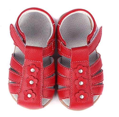 Dream-studio 履き心地 柔らか サンダル ベビー 可愛い お花 付き (サイズ22/13.5㎝, レッド)