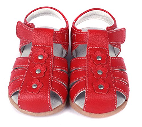 Dream-studio 履き心地 柔らか ベビーサンダル つま先 ガード 可愛い お花 付き (サイズ30/17.5㎝, レッド)